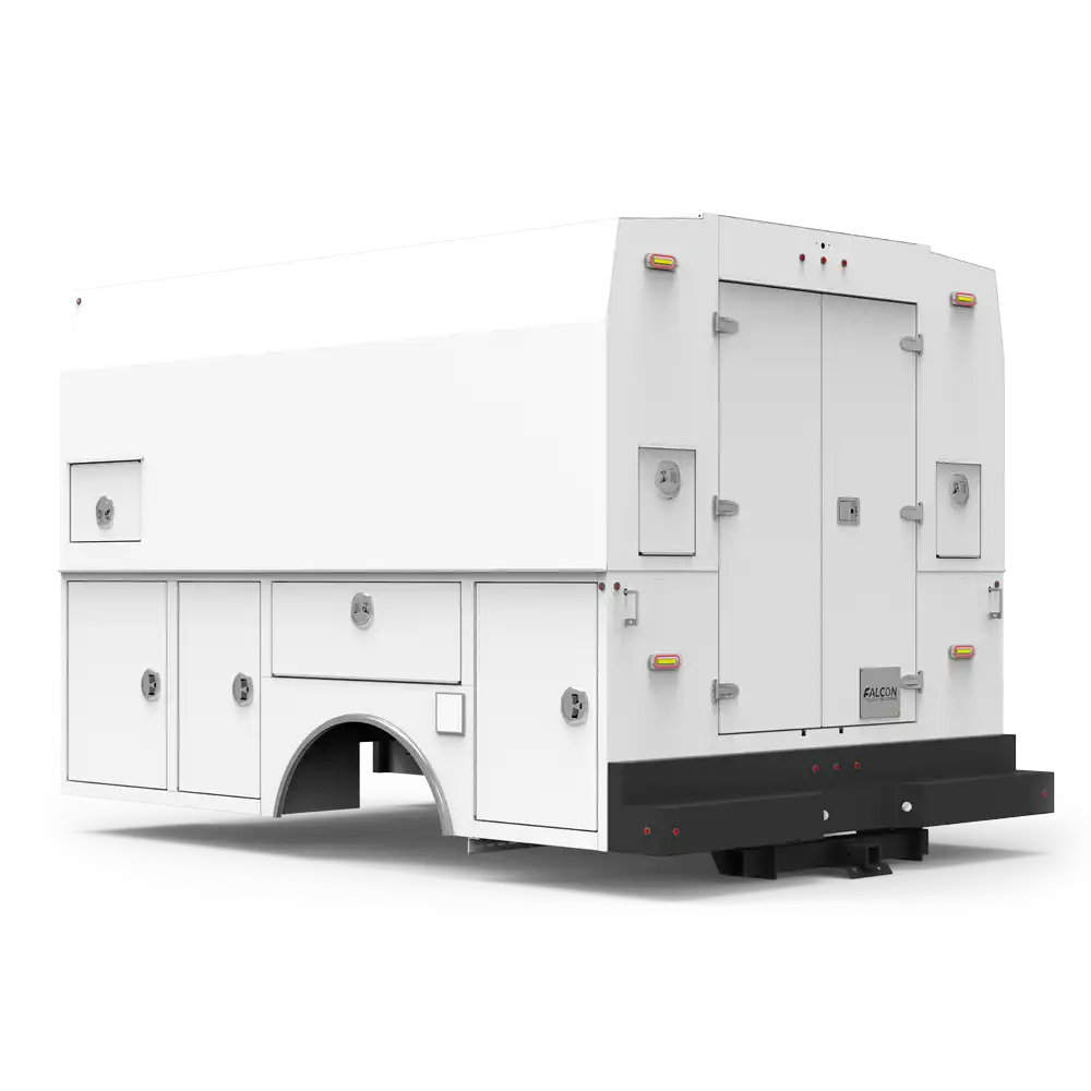 Customize your Enclosed Body to match the demands of your specific job site. Falcon Truck Bodies offers a range of additional options, including upgraded storage configurations, lighting packages, bed liners, and enhanced security features. Whether you need extra compartments for specialized tools or reinforced materials for heavy-duty tasks, these options ensure your service body works as hard as you do.